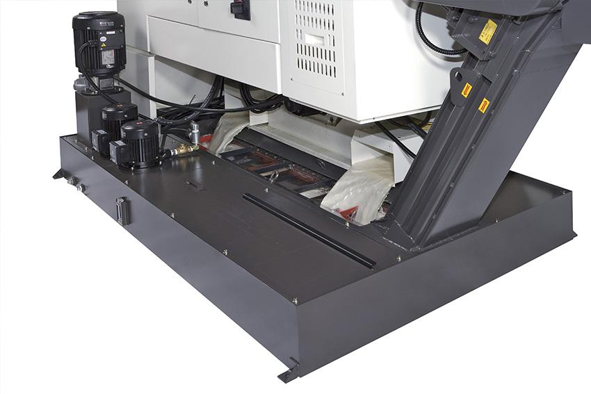 - A chip auger is installed at the front of the base, designed to deliver chips out of the machine and prevent chip accumulation.
